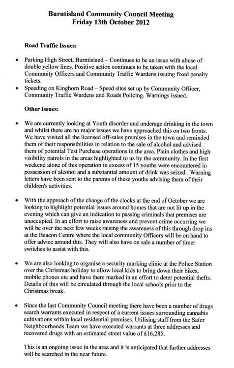 to write to Cllr Neil Crooks Chairman of Kirkcaldy
