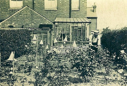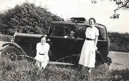 Above - David Danskin in the back garden of his house in North Street, Coventry. Right - the house in North Street today. Below - a family outing (photo probably taken by David), showing his daughters Hilda and Bess, and (in the car) his mother-in-law, Clara Rosie Richardson. |