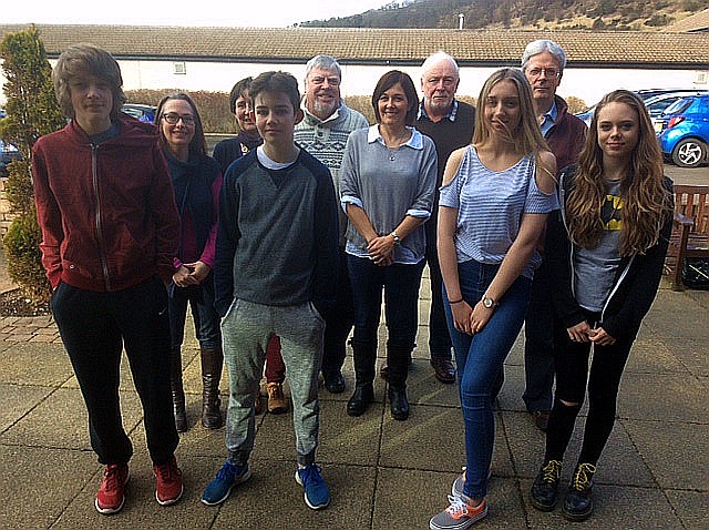 The 70th anniversary of the town twinning link was in 2016, and you can see extensive coverage of the celebration events in the August 2016 issue of the Burgh Buzz (pages 1, 12 and 13) and in the November 2016 issue of the Burgh Buzz (page 12). The picture below shows Burntisland's 2016 Town Twinning Committee with four twinners. At the rear: Committee members Yvonne Shivas, Sarah Stuart, George Kay (Convener), Sarah Main, Bruce Stuart and David Caldwell. In front: twinners Magnus, Andrew, Natalie and Hanne. Missing from the photo is Committee member Sarah Price who on 4 June 2016 sailed with four other members of Burntisland Sailing Club from Burntisland to Flekkefjord.
