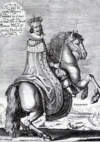 Two images of King Charles I, as he enters Edinburgh. The drawing on the right is by Lindsay Brydon. |