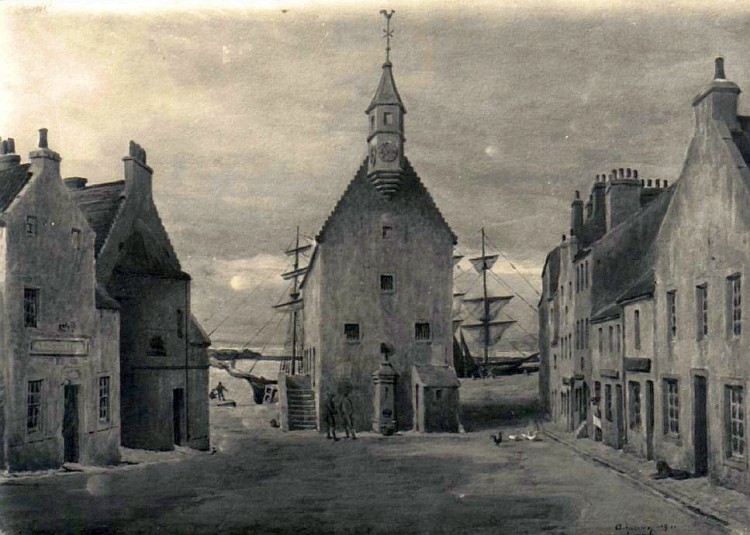 Below - the Tolbooth, completed in 1620; artist's impression by